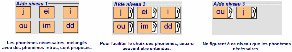 Mettre la réussite à la portée de l'apprenti lecteur sans pour autant que l'ordinateur ne fasse à sa place... pour parvenir à cet objectif le logiciel propose un système d’aide hiérarchisé.